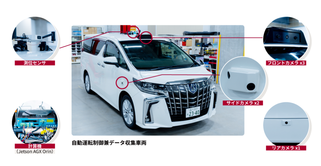 チューリングの自動運転ハードウェア 車載システム 1. 車両とハードウェアは、研究と実装をつなぐ接点 チューリングの自動運転開発は、AIモデル単体で完結しません。実車で動くシステムとして成立させるために、車両の選定・改造、センサー構成、車載計算機、車両制御インターフェース、そして安全設計までを含めて一体で設計しています。 この「現実の車で走らせる」工程は、単なる検証作業ではなく、学習と改善のサイクルを回すための前提条件です。データを収集し、モデルを学習し、車にデプロイして走らせ、結果を次の学習へ戻す。ハードウェアはそのループの始点と終点に存在します。 2. データ収集車両の役割:学習に耐えるデータを「毎日」取る 完全自動運転では、良いモデルだけでは足りません。良いモデルは、良いデータの上にしか育ちません。 チューリングでは、データ収集車両を継続運用し、走行データを日々蓄積しています。ここで求められるのは「動く車を作ること」ではなく、「センサーや収録が安定稼働し、欠損なくデータが取れ続けること」です。 データ収集は、カメラや各種センサーが動作し続けること、収録されたデータが正しい形式で保存され続けること、異常が起きたときにすぐ検知できることが前提になります。つまり、車両は“移動する分散システム”であり、運用と監視を含めて設計する必要があります。 この土台が崩れると、どれだけ計算資源があっても学習が前に進みません。 3. 車載ハードウェア構成:シンプルな入力で、現実の車を動かす チューリングの車載ハードウェア構成は、一見するとシンプルです。 主な入力はカメラであり、車両の外周に複数台のカメラを搭載しています。さらに測位センサー(GNSSなど)を搭載し、学習や検証に必要な軌跡情報を取得できるようにしています。 車載計算機は、車内の限られた電力・温度・振動環境で動作しなければなりません。そのため、一般的なサーバーやワークステーションと違い、環境耐性を前提とした構成が必要になります。 チューリングでは、車載計算機の上でLinuxを動かし、その上で複数プロセスが協調して動く構成を採用しています。センサー制御、推論、ログ記録、UIなどを役割分担し、プロセス間通信(Pub/Sub)で連携する設計です。システム全体のログを統合的に残し、学習用のRawデータへ接続する点も、この構成の重要な役割です。 4. 安全設計:ソフトだけでなく、物理の最後の防壁を持つ 自動運転のシステムでは、安全性は設計の一部です。 チューリングでは、車とのインターフェース部分に安全性を担保する仕組みを挿入し、異常時の挙動を制御できるようにしています。たとえば、車両との通信の間に安全用のマイコンを介在させ、出力や挙動を検証しながら制御する構成を採用します。リアルタイム性が求められる信号処理は、汎用OSに頼らず、ベアメタルで動かすなど、用途に応じた設計を行います。 加えて、ソフトウェア的なガードだけでは足りません。 万が一に備えて、物理的に信号を遮断できる非常停止手段を用意し、人間が介入できる最後の防壁を持ちます。自動運転は「正しい信号の範囲内で危険な挙動」を起こす可能性もゼロではなく、運用設計としても安全を多重化する必要があります。 5. 拡張セットという考え方:改善サイクルを止めないための実験設計 車載計算機は市販品であり、構成変更の自由度には制約があります。一方で、モデルが大規模化し、実験の密度が上がるほど、車載計算機だけで推論を回すことが難しくなる場面も出てきます。 そこでチューリングでは、車載計算機のみで推論を行う「通常セット」に加え、より大きなモデルや実験的検証のために外部ワークステーションへ推論負荷をオフロードする「拡張セット」を用意しています。これにより、研究の改善サイクルをできるだけ止めずに回せる環境を整えています。 この設計は、量産に向けた最終形を直接示すものではありません。むしろ、モデルとシステムを高速に改善するための実験構成として位置付けられます。完全自動運転の開発では、この改善速度が競争力になります。 6. 今後の展望:複数車種対応と次世代車載アーキテクチャ 車両・ハードウェアの今後の中心テーマは、研究デモを超えて、実用レベルへ移行していくことです。 そのために、まず複数車種への対応を進め、特定車種に依存しない形で自動運転化できる状態を目指します。車種が変わるとセンサー配置、制御特性、信号仕様、搭載スペースなどが変わるため、ここは単純な移植ではありません。 さらに、次世代SoCと車載アーキテクチャへの対応も重要になります。現行の車載計算機でできることには限界があり、より大きなモデルを車載で成立させるための計算機・ECU設計が必要になります。将来的には次世代プラットフォームへの対応、量産を見据えた組み込みアーキテクチャへの接続、必要に応じて独自ECUの開発も含めて検