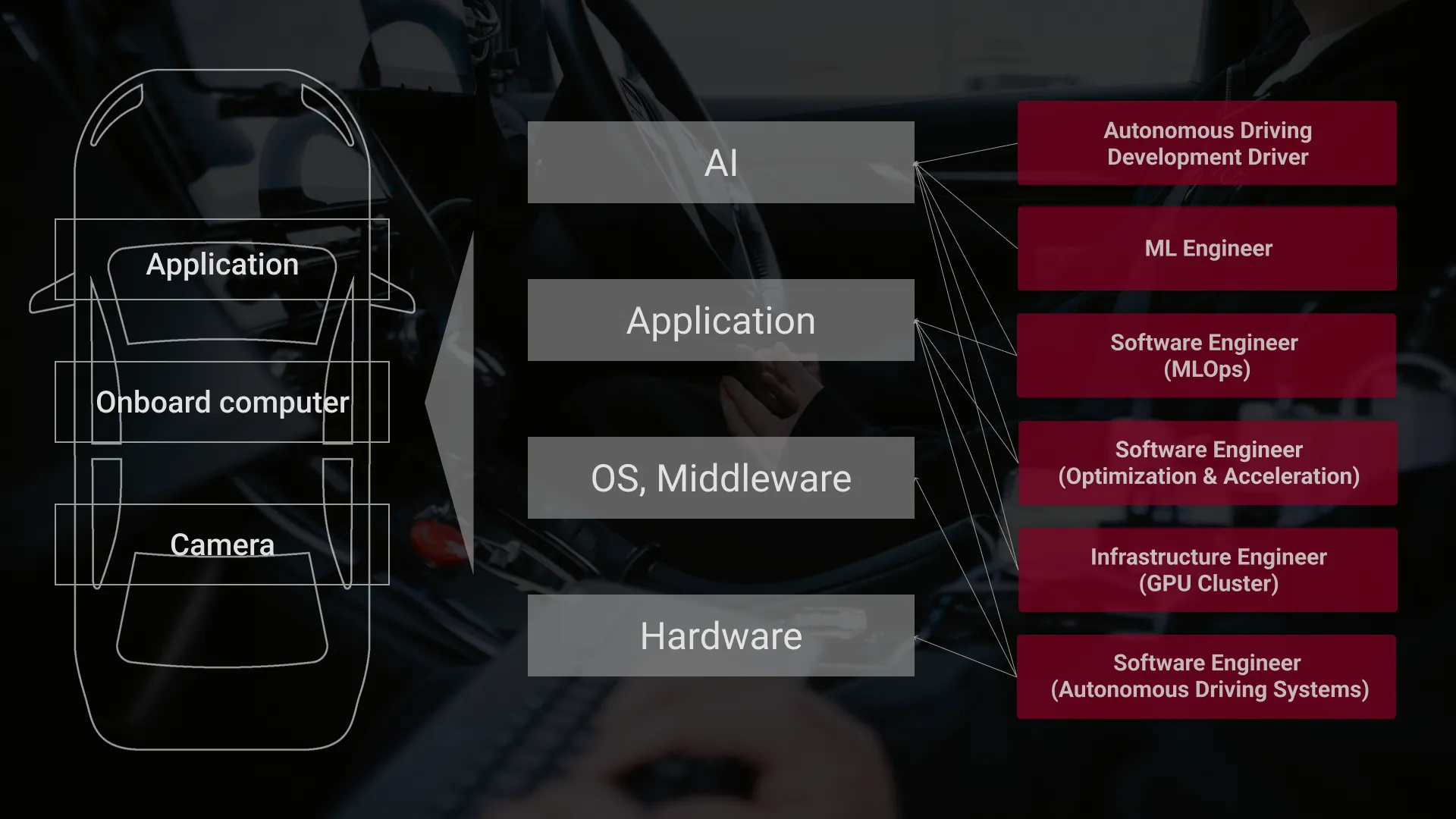 Roles & Teams ML Engineer Software Engineer (MLOps) Software Engineer (Autonomous Driving Systems) Software Engineer (Optimization & Acceleration) Infrastructure Engineer (GPU Cluster) Autonomous Driving Test Driver