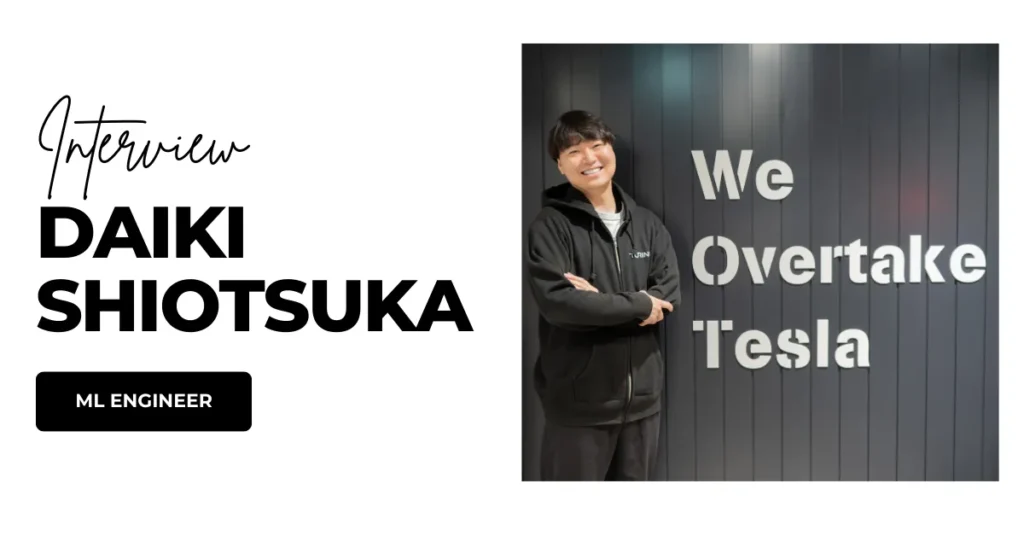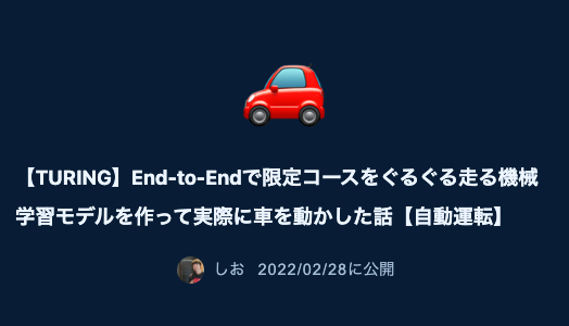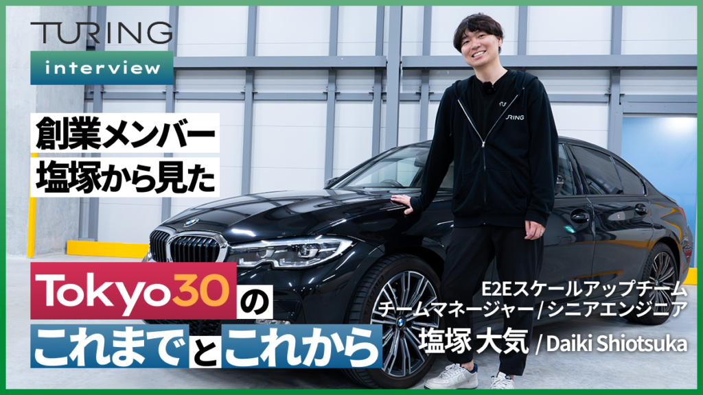 塩塚 大気 End-to-Endモデル開発 2022年新卒入社 これまでのキャリア 大学院では自動運転の研究室で生成モデルを使ったデータ拡張の研究を行っていました。複数の国際会議、国際誌で敵対的生成モデルによる悪条件への画像変換の研究を発表しました。修士課程在籍時の2021年にインターンとして参画、その後2022年に新卒として入社しました。入社後はE2E自動運転の開発に携わっています。 入社のきっかけ 2021年秋に、CEO山本のX (当時 Twitter) の投稿にいいねをしたことでDMでチューリングに誘ってもらいました。当時自分は大手への内定があったことやその時のチューリングは共同創業者の山本、青木の2名しかいなかったため新卒で自分が入っても貢献できるイメージがなかったことを理由に最初は大学院卒業までの期限付きインターンとして関わらせてくださいと伝えていました。しかし一緒に働く中で共同創業者の2人や集まってくるメンバーと完全自動運転という大きな夢にチャレンジしたいと思い入社を決意しました。 仕事内容 インターンの時に取り組んだプロジェクトは「End-to-Endで限定コースをぐるぐる走る機械学習モデルを作って実際に車を動かす」というものでした。低速かつテストコースという実験条件でしたが、実際にE2Eで車を制御させてグルグルさせることができており、チューリングの最初のプロジェクトとして非常にカラーの出たよいものだったと振り返って思います。 現在はE2E自動運転を開発するグループの一つのチームのチームリーダーとして、より良いE2E自動運転の開発に取り組んでいます。特にE2Eモデルの性能を向上させるためのデータのスケーリングについてチームで取り組んでおり、他チームと連携して自動運転の向上を行っています。 仕事の醍醐味・やりがい 優秀かつ明るい人が集まっている環境のためとても刺激になります。また、MLで車を動かして現実世界とインタラクションを取る、最終的には社会課題を解決できるという魅力的な仕事だと思います。スタートアップという特性上、自身の頑張りによって開発や事業を推進することができそこに面白みを感じています。 チューリングの職場環境について MTGは必要最低限で開発する時間が取れる環境だと思います。 全員のやる気が高く、インテンシティが高い組織だと思います。 正直で素直なコミュニケーションを好む人が多くチームで働きやすいです。 チューリングにマッチする人 自動運転を作りたい人。 やりたいことを持っている人。 チューリングを検討している方へ 完全自動運転は未来の基幹技術の一つだと思います。そこに対して真正面から取り組める環境はそう多くないと感じています。一緒に完全自動運転を作る方を募集しています。 私の愛車紹介 BMW320d 新卒の時にあまり後先考えずに買いました。その後本社の東京移転などもあり、何度か手放すことを考えましたがその度に思いとどまり3年以上乗り続けています。結果的にそれはとても良かったと思っており、たくさんの思い出を作ることができました。